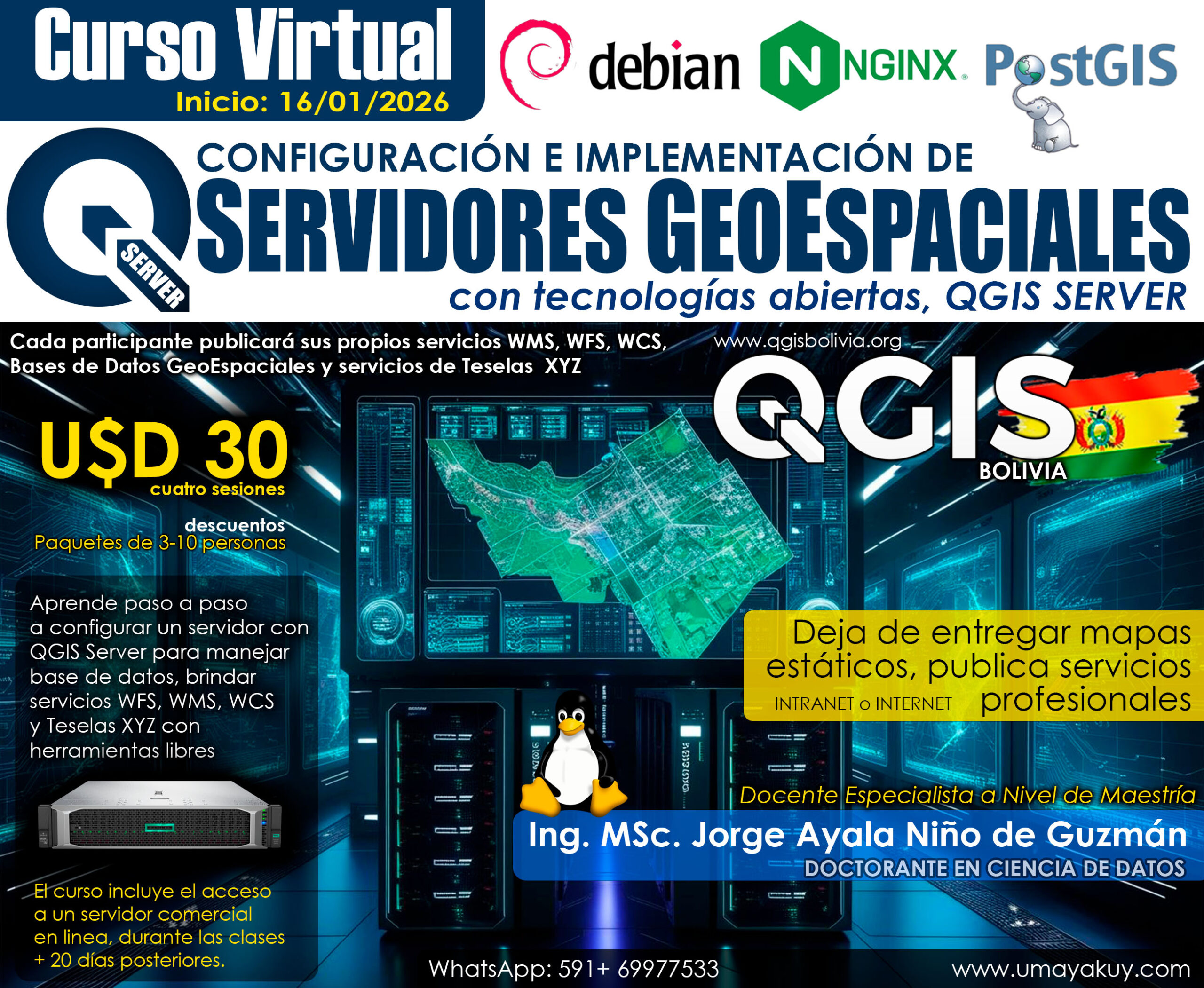 Este 2025 lanzamos el sitio web de usuarios de QGIS en Bolivia, el cual a iniciativa personal desde el año 2016 en Bolivia se inicia la difusión de QGIS mediante cursos de capacitación en QGIS presenciales y virtuales, en la que el año 2019 a causa de la cuarentena por el Covid-19 se tiene el…